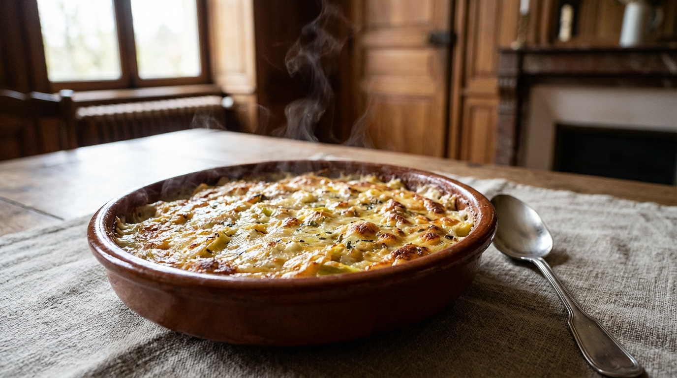 Ce gratin doré poireaux-moutarde au comté rend l’hiver plus doux et fait l’unanimité en famille