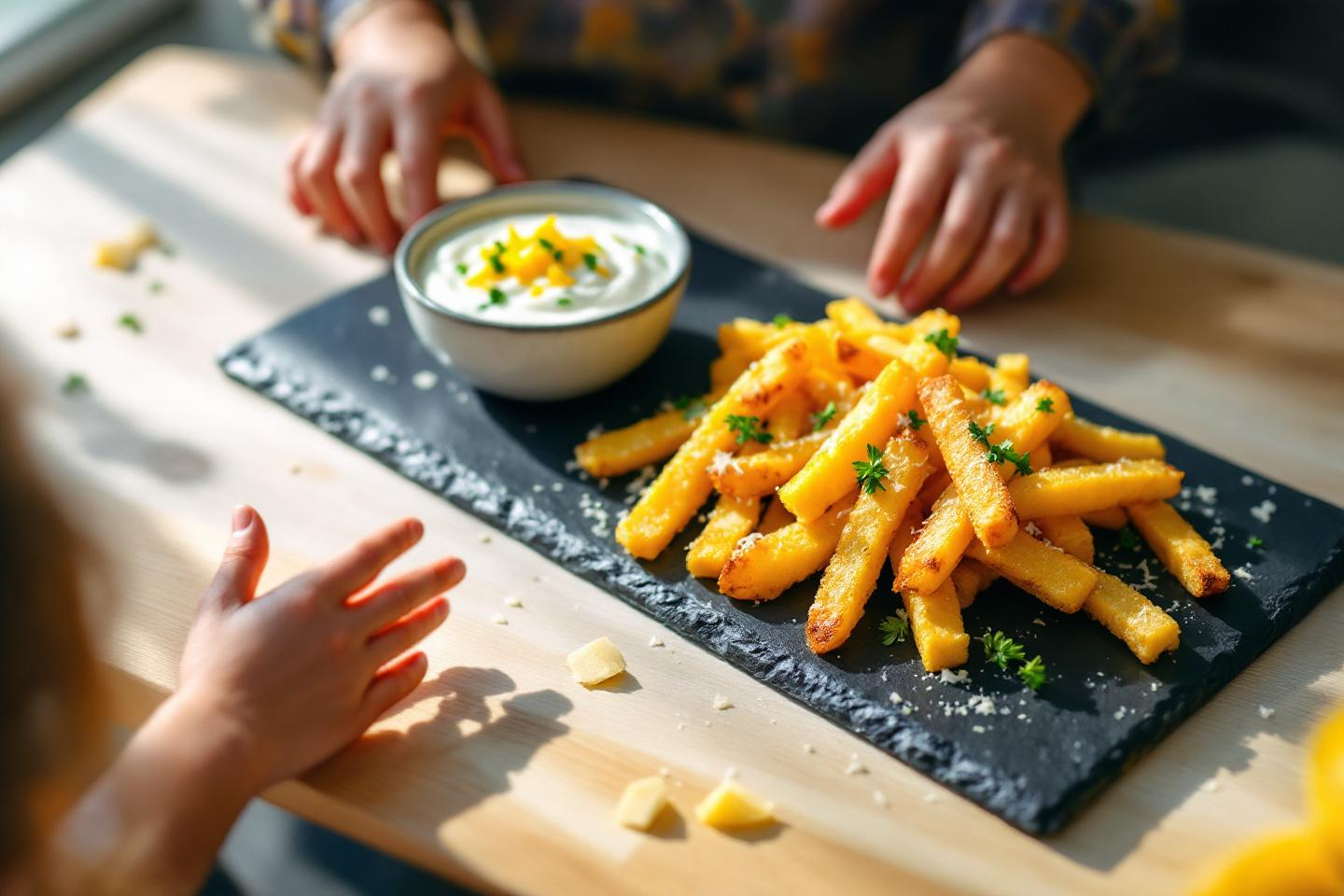 Ça change des frites classiques et coquillettes : voici les frites de polenta au parmesan que les enfants dégomment sans râler !
