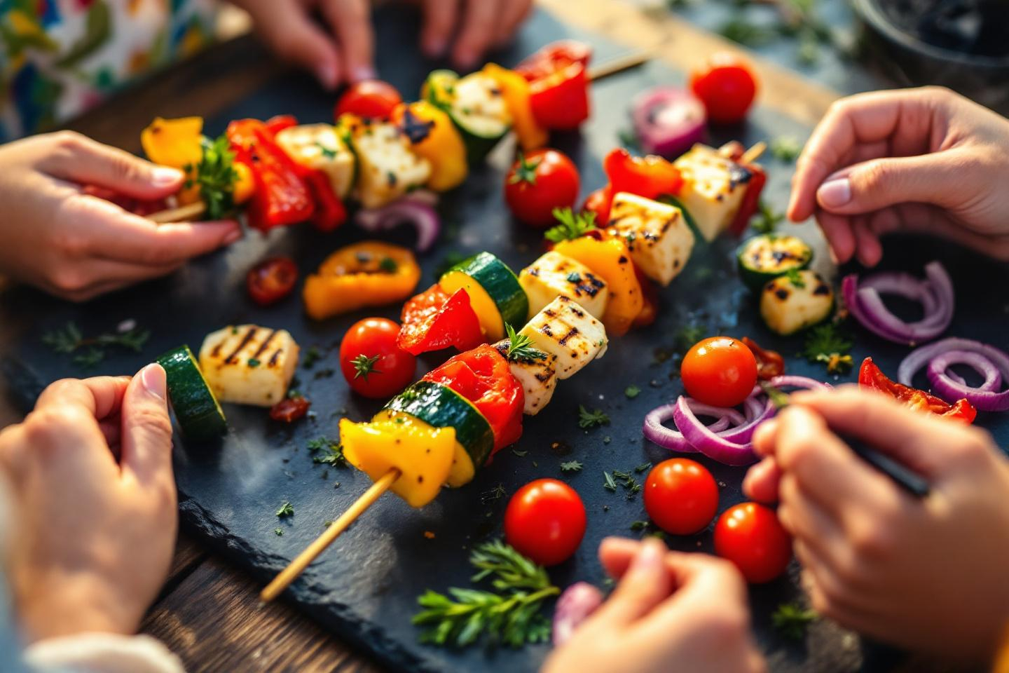 Le BBQ végétarien qui plaît à toute la famille : des brochettes de légumes et halloumi faciles à préparer avec les enfants !