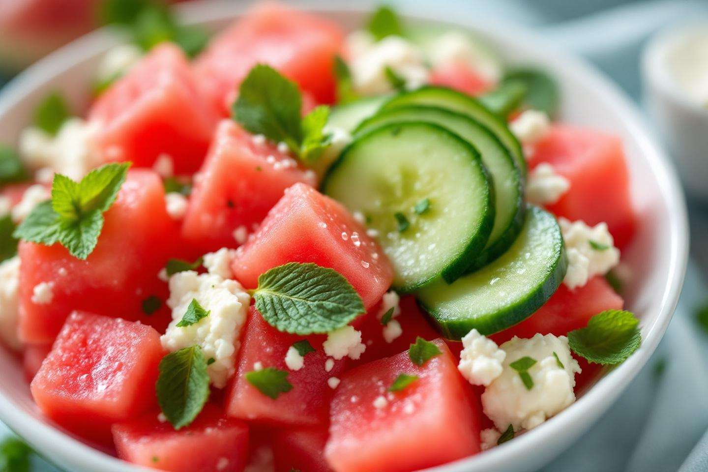 Vos enfants boudent la salade ? Cette recette à la pastèque, au concombre, à la feta et à la menthe pourrait bien les convertir à la verdure !