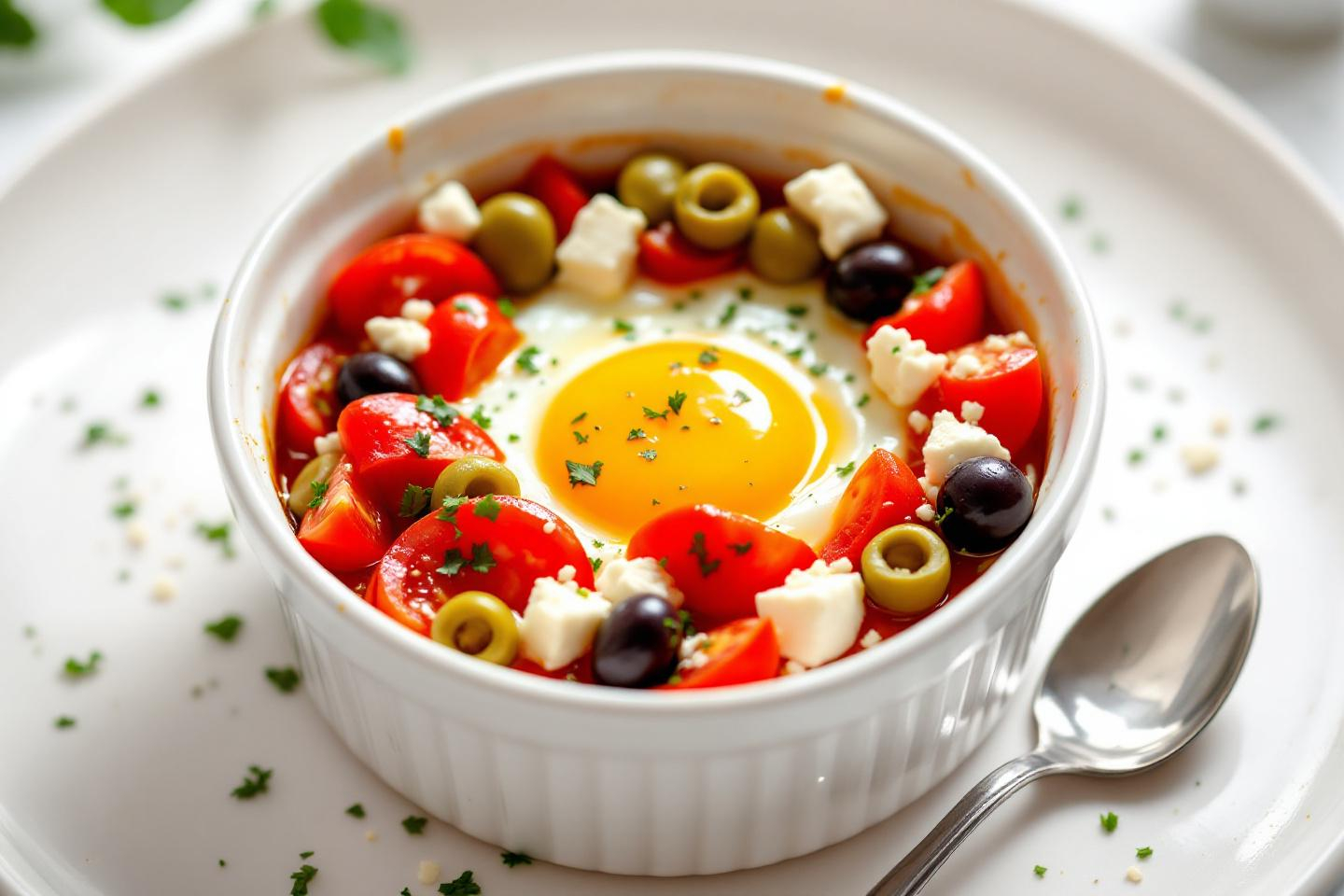 Recette ludique que les enfants adorent au repas : les œufs cocotte simplissimes aux olives, à la tomate et à la feta