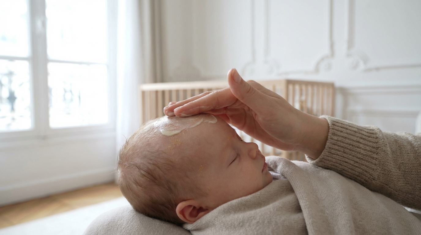 « Les croûtes de lait de mon bébé ne partaient jamais : sa dermato m’a dit d’appliquer ceci le soir et de ne surtout pas gratter »
